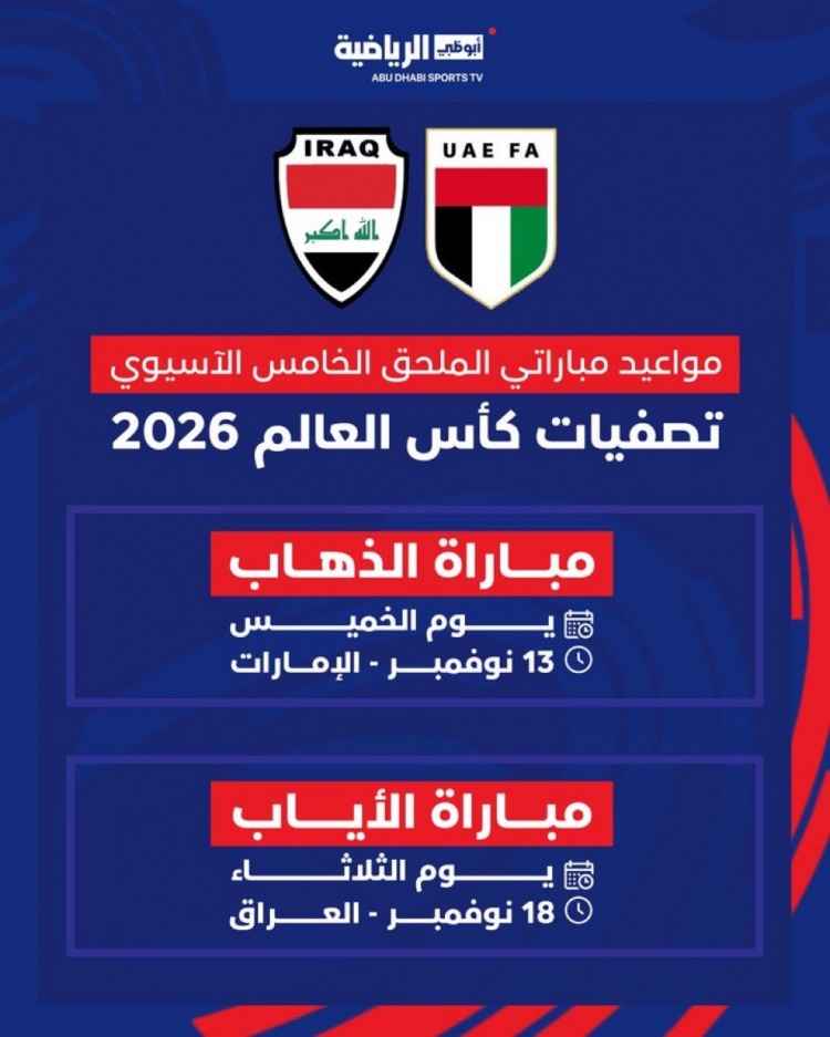 亚洲世预赛第五阶段伊拉克vs阿联酋,两局 胜者参加洲际附加赛