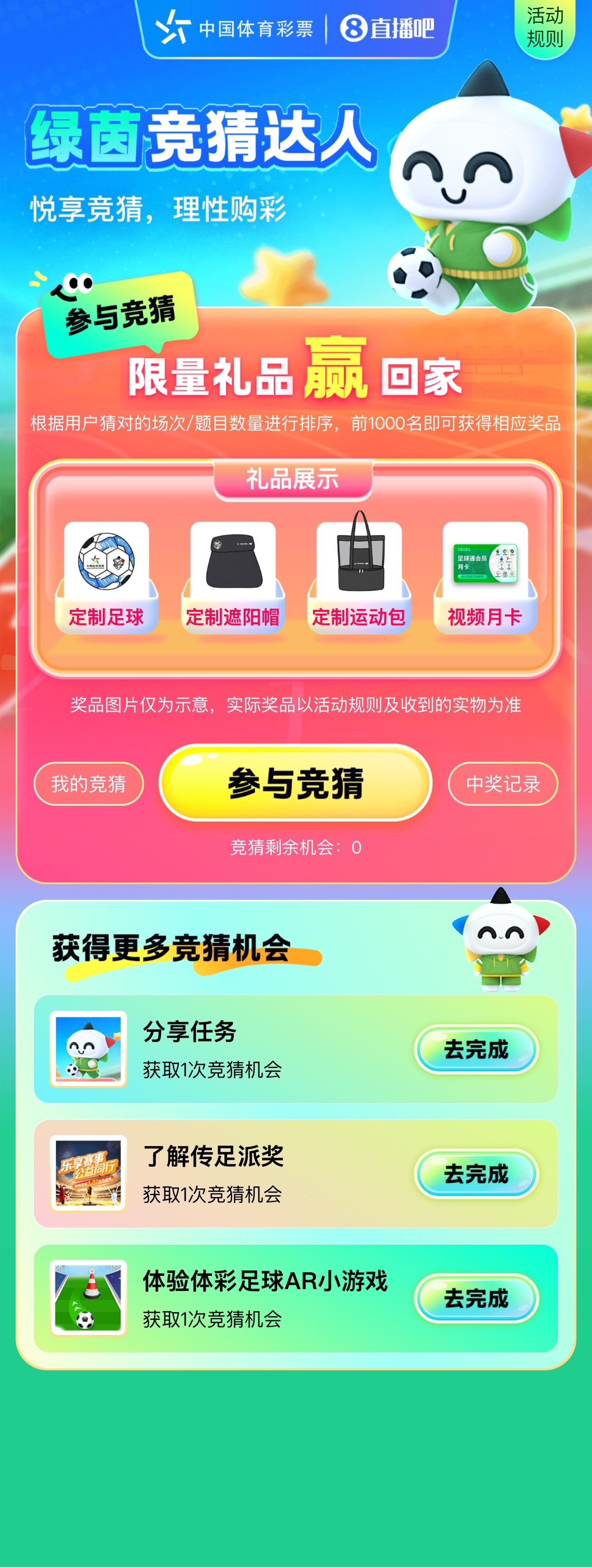 大量新援涌入带来了剧烈 的角逐 ,每场赛事 都充满了不确定性,2025/26赛季的英超注定是与众不同的,小伙伴们是不是已经被来自英伦的热血 与热血所感染?如果觉得看球还不过瘾,可以加入 “绿茵竞猜达人”竞猜活动,进入体彩小程序加入 竞猜,赢取定制古代足球 、网球帽、运动活动 包和视频月卡等限量礼品,享受观赛与竞猜的双重乐趣。