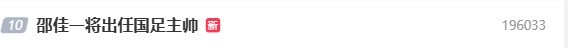 “邵佳一将出任国足主帅”上微博热搜,一度排到热搜第十位