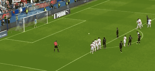 第41分钟,葡萄牙获得前场位置不错的定位球,C罗停赛,若昂·内维斯操刀主罚,皮球滑过一道美妙的弧线,直挂死角。